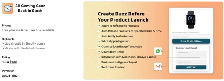 This Shopify Back-in-Stock app is designed to build excitement for your products! Back-in-stock timer badges, special notifications, and tags help create buzz about products returning to your online store. This app is perfect for pre-sales and notifications about upcoming out-of-stock products.