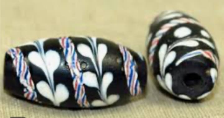 "Ambassador" Beads: Often misnamed "Lewis and Clark" beads, these are frequently large, black Venetian glass beads with intricate, hand-wound inlaid floral motifs, says Beads of Paradise.