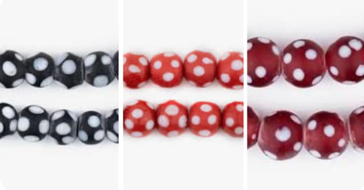 White Heart Beads (Cornaline d'Allepo): Red glass beads with a white inner core, frequently associated with the trade.
