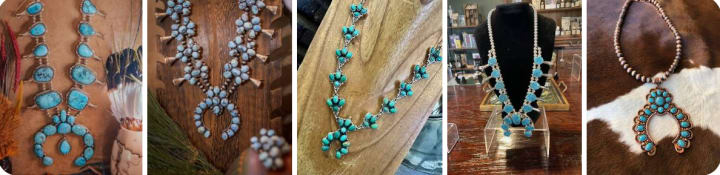 Like glass beads, which were introduced to Native American artisans in the Great Lakes region and the Pacific Northwest by early European settlers and fur traders, and changed the artwork substantially, so did silverworking fabrication change the art of the Southwest Native American, when contact was made by Spanish settlers who settled South Central North America (Mexico - Texas - New Mexico - Arizona). Hopi, Zuni and Navajo artisans created stunning tourquoise, coral and silver squash blossom necklaces and Kachina bolo ties.