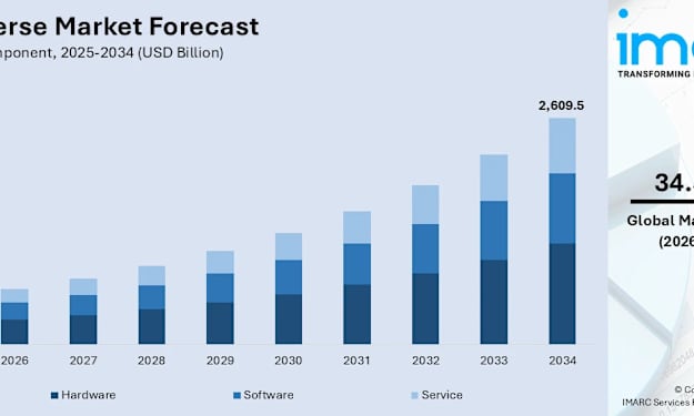 The rapid expansion of immersive digital ecosystems and the integration of 3D-driven environments are redefining how individuals and businesses interact, creating a landscape where the physical and virtual worlds blend seamlessly. Supported by advancements in high-speed connectivity and spatial computing, the global metaverse market is evolving into a comprehensive infrastructure for commerce, education, and social engagement. According to IMARC Group’s latest data, the global metaverse market size was valued at USD 180.8 Billion in 2025. Looking forward, IMARC Group estimates the market to reach USD 2,609.5 Billion by 2034, exhibiting a CAGR of 34.53% from 2026-2034.