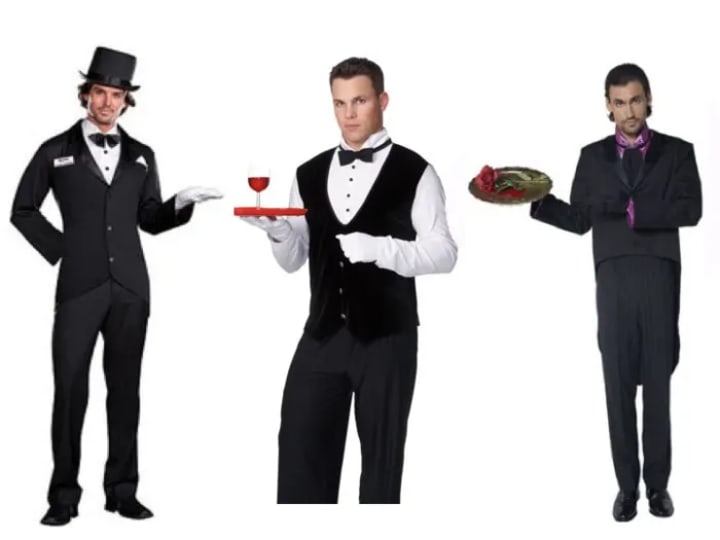 The butler/maid costumes were as I expected. The butlers are dressed in full suits and white gloves, while the maids have barely anything on to make sure they don’t get their clothes dirty. I was surprised at how few butler costumes I could find for sale in the mass market. These were the only three costumes I could find that did not have a monster or decaying corpse attached to the theme.