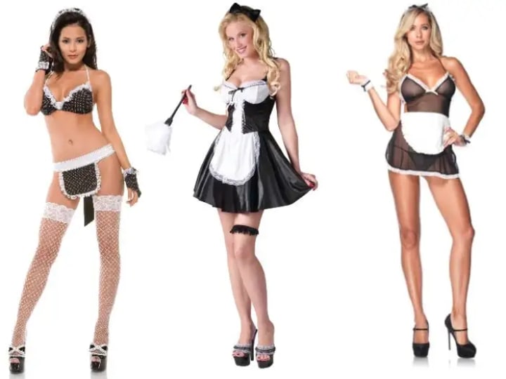 Maid outfits were hard to narrow down. They came in so many different styles that I had to choose three that I felt represented most of them. I went with the two-piece, the sheer shrunk version, and the one that actually covers up body parts.