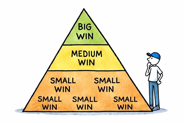 A little progress each day will help you build the winning mindset, and can take you to the top of the pyramid by staying at it.