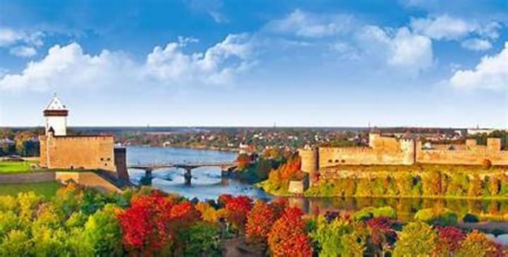 On the other side of the river, you can see Ivangorod Fortress, which is in Russian territory.