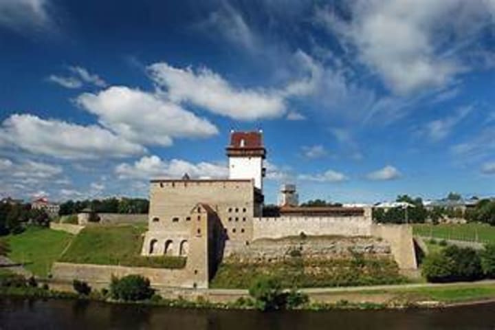 Narva Castle stands by the Narva River.