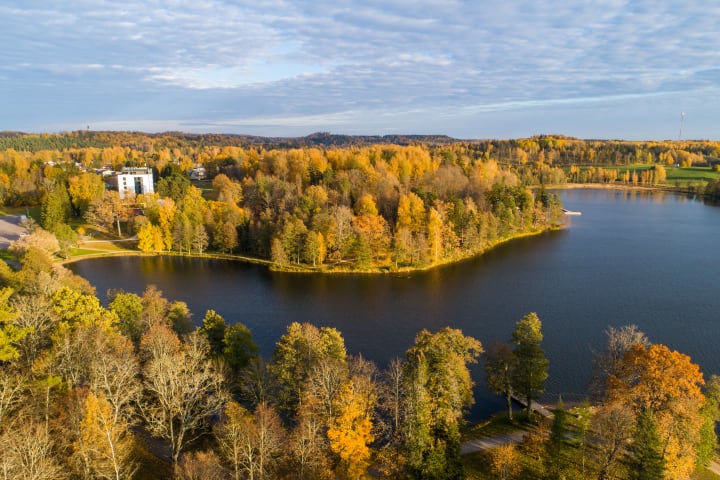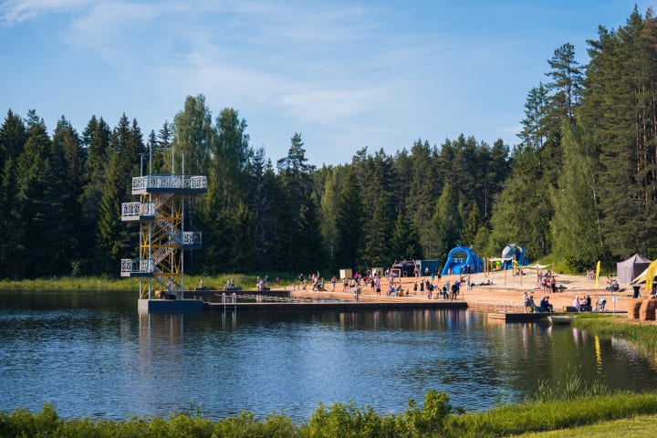 Nearby, Lake Puhajarv is surrounded by sauna houses and forest trails.