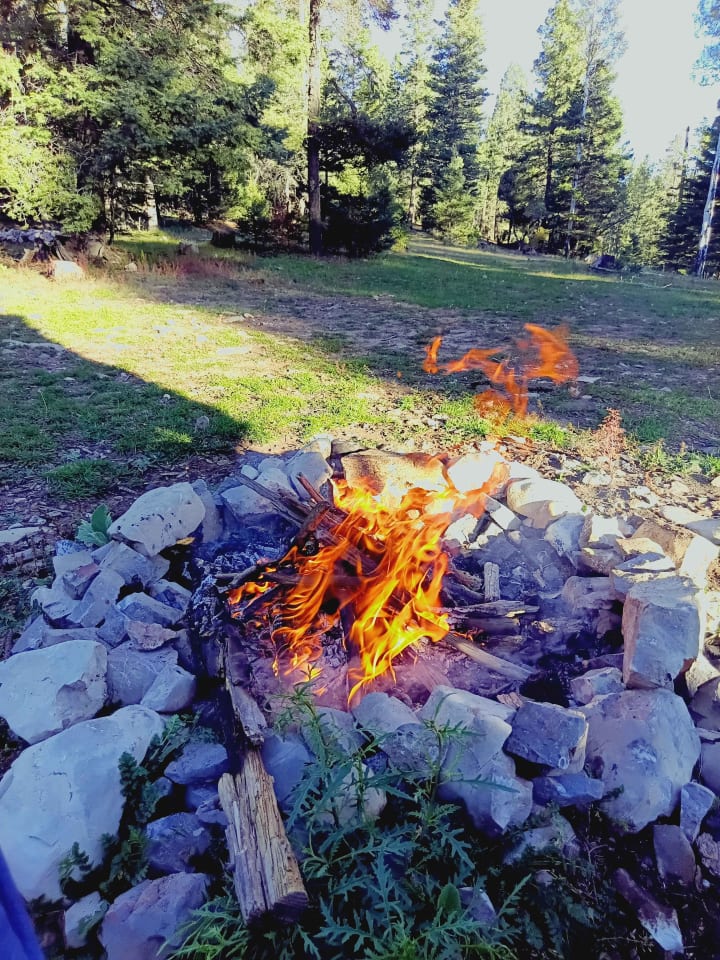 I sit in my tent listening to the chirping sounds of night and enjoying the smell of campfires. I drove four hours. This campground is lively. Children playing next to me. The whole family brought a U-Haul filled with things. They also sprayed the whole campsite for bugs but that's another story. I drank my rum and finished my last beer. Something I shouldn't drink because I woke up with Charlie horses. I'm tired of the humidity and the bugs I need a dryer climate. I feel winter coming and I need work. The kids are playing soccer, and they keep kicking the ball this way.